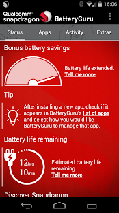 Snapdragon™ BatteryGuru es una aplicación de ahorro de batería que prolonga el rendimiento de la batería y mejora la experiencia general del usuario. Para ello, realiza cambios inteligentes que optimizan la funcionalidad del dispositivo en teléfonos con procesadores móviles Snapdragon. Esta aplicación: