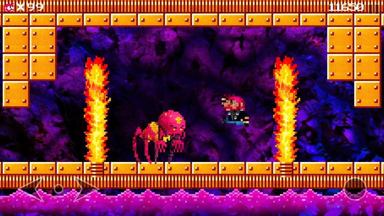 Este juego de plataformas retro rinde homenaje y parodia, clásicos como Super Mario Bros., Castlevania y Mega Man, con estilo!