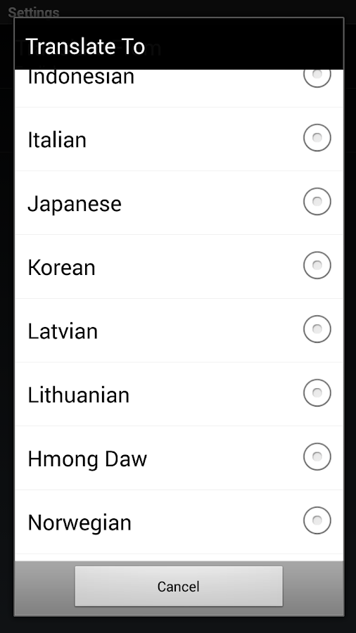 Ajuste por defecto: Traducir del Inglés al idioma local. Pulse la tecla MENU para cambiar la configuración. Puede seleccionar cualquier combinación de pares de idiomas. Por ejemplo , Traduce ya del Francés al Inglés , o del español al ruso, etc .