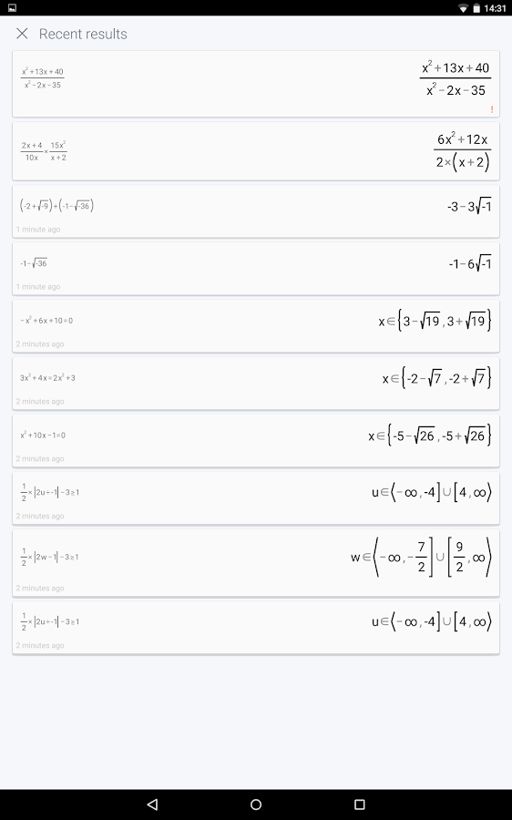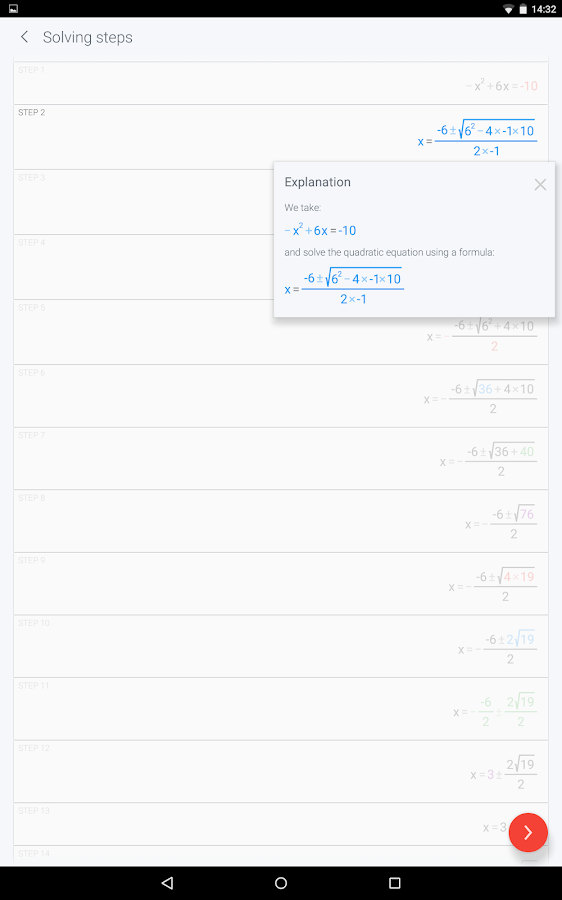 Utilízala para obtener ayuda cuando te encalles con un problema. ¡Pulsa el botón 'pasos' y verás toda la solución paso a paso! Más abajo podrás ver una lista completa de los problemas matemáticos que reconoce la aplicación.