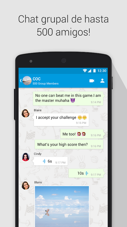 CHATS GRUPALES: Crea grupos de hasta 500 amigos, familiares o compañeros de trabajo.