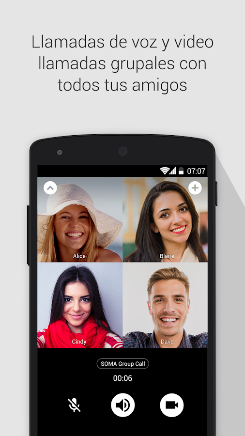 SOMA Messenger es la única aplicación GRATUITA de llamadas de video en HD (alta definición), llamada de voz y mensajería hecha para comunicarte globalmente. Donde quiera que te encuentres habla cara a cara hasta con 4 personas al mismo tiempo de forma segura, desde tu teléfono y sin cargos ni publicidad, de por vida.