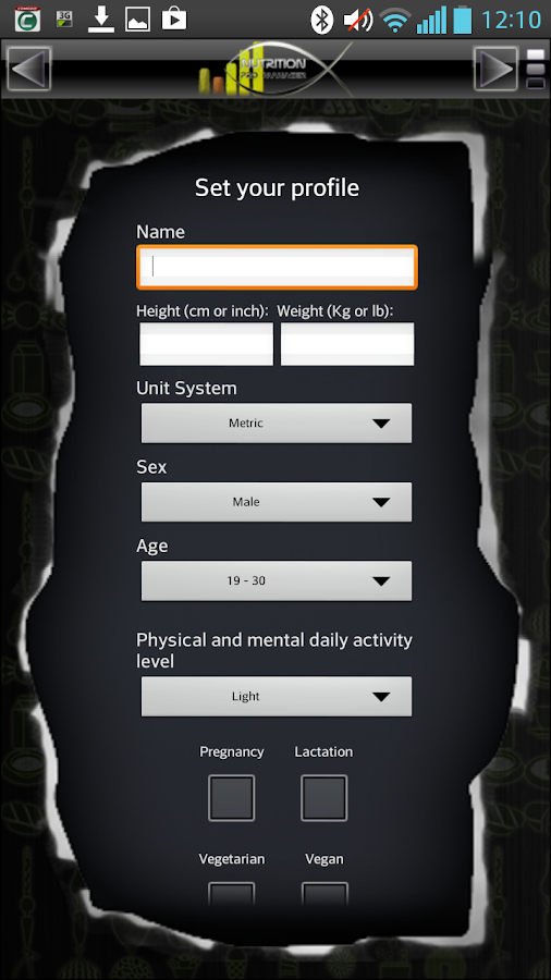 ✓ DRI-RDA-AI diet calculation based on your physical parameters and type of diet (normal, vegetarian or vegan), eventually also pregnancy and lactation conditions are evaluated if selected in your profile.