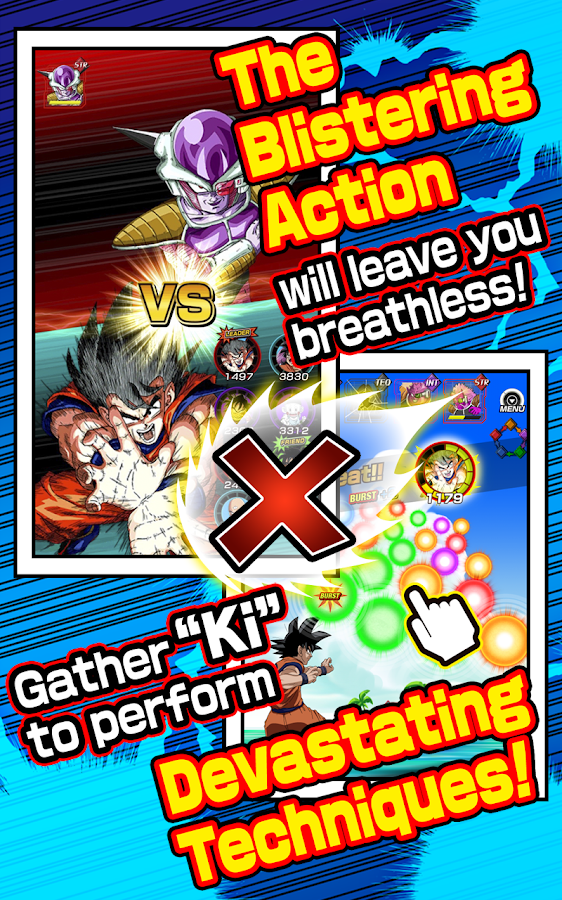 Simplemente toque las Esferas de Ki en la pantalla para entrar en combate supersónicos! La lucha es tan extrema la pantalla no será capaz de manejarlo! Despierta el verdadero potencial de tus personajes favoritos de Dragon Ball y hacerlos más fuertes que nunca! Usted nunca ha experimentado Dragon Ball como este!